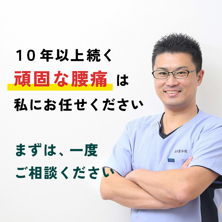 1年前からの突然の腰痛。いつものように湿布を貼れば治るだろうと繰り返しても治らず、色んな人に腰痛を治す病院を紹介してもらったり探してましたが一向に回復せず。近場、遠方、色んなジャンルの腰痛クリニックへ行き、いくら使ったかわからないほどお金も使いました。 どこかいいクリニックがないものかと検索してましたらこちらを見つけてすぐ予約。 予約日まで待ち遠しくて昨日行ってみたら今までのクリニックとは違ったアプローチ。これは治していただけるかも!と。じっくり施術していただいたあとは完全じゃありませんが今まで行ったクリニックとは違うラクさにビックリ。通おう!と決め10回コースを帰りにお願いしてきました。 朝イチが1番辛く、どうかしたら夜中痛みで起きていたのが朝まで起きずいつもより凄くラクに起きれました。 これから回数重ねて通えばまた昔みたいに快適な毎日を送れる手応えを感じました。 よそではイマイチだった方、是非マル先生を一度訪ねてみて下さい!